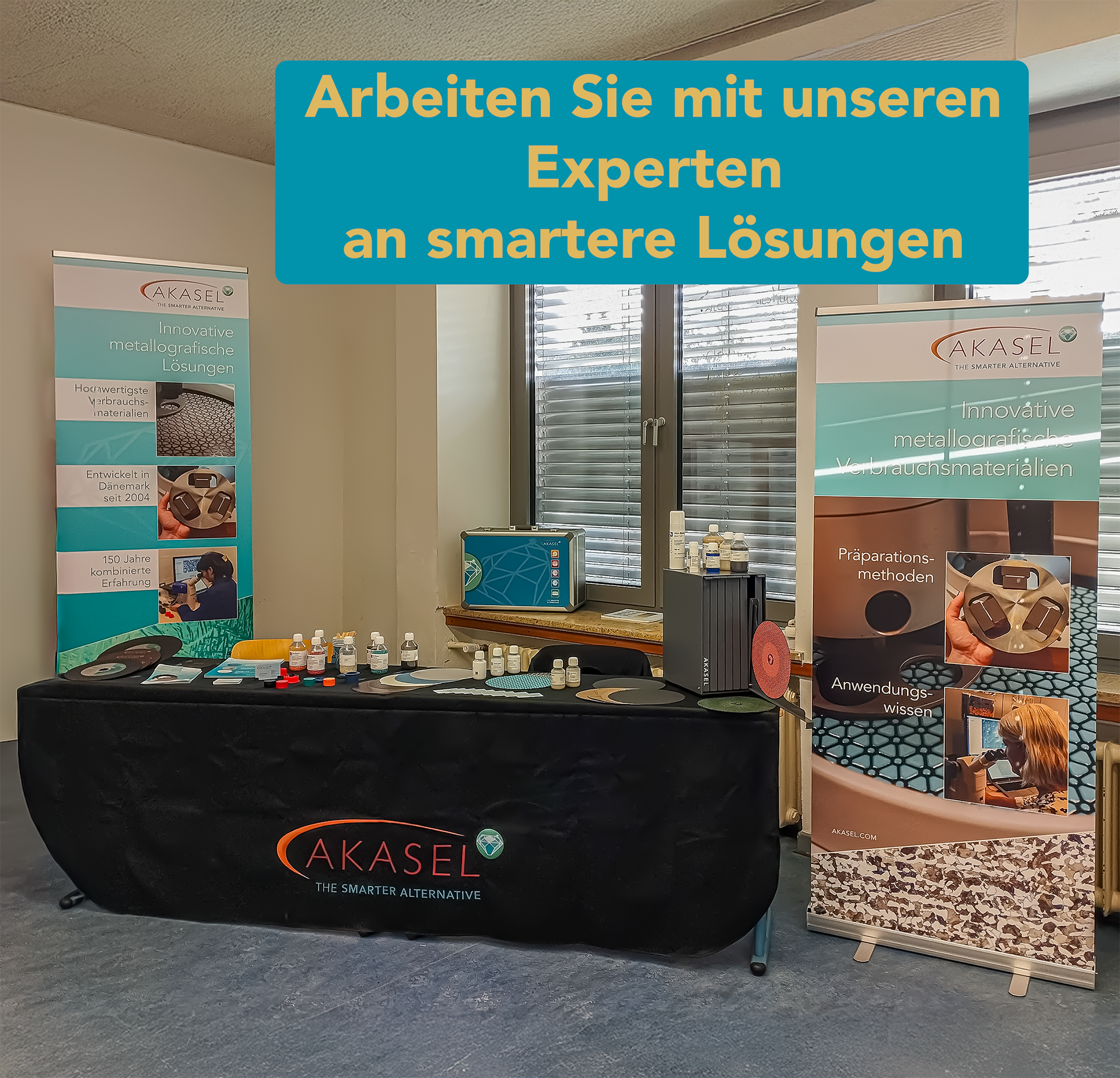 Akasel hat sich auf die Entwicklung, die Herstellung und den Vertrieb hochwertiger Verbrauchsmaterialien für die metallographische Prüfung und Probenpräparation, sowie auf fortschrittliche metallografische Präparationsmethoden spezialisiert. Mit einer Vielzahl von Produkten und Präparationsmethoden deckt Akasel die meisten Anwendungen im Bereich der Metallographie ab.