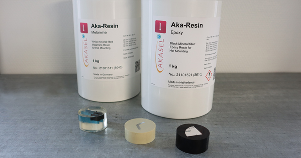 Notre résine acrylique est un système transparent à deux composants, à durcissement rapide, avec une teinte légèrement jaunâtre. Aka-Clear-2 se compose d’une poudre acrylique et d’un liquide acrylique qui durcit en 8 minutes. En mélangeant la poudre Aka-Clear-2 avec le liquide Aka-Clear-2, vous obtenez des montages totalement transparents et sans bulles, sans avoir à utiliser un pot sous pression. Grâce à la visibilité totale de l’échantillon dans l’enrobage, Aka-Clear-2 est idéal pour l’analyse des défaillances et la préparation des composants électroniques. Un temps de durcissement court est souvent nécessaire dans les environnements de production où des délais d’exécution rapides sont exigés. Dans ce cas, Aka-Clear-2 est supérieur aux résines époxy d’enrobage à froid et aux résines d’enrobage à chaud.
