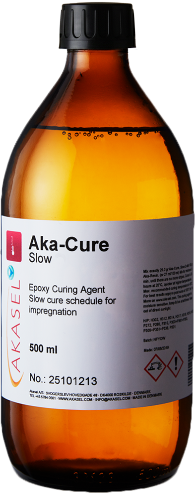 Mélanger exactement 12 g d’Aka-Cure Slow avec 100 g d’Aka-Resin Liquid Epoxy (alternativement 13,5 ml/100 ml).