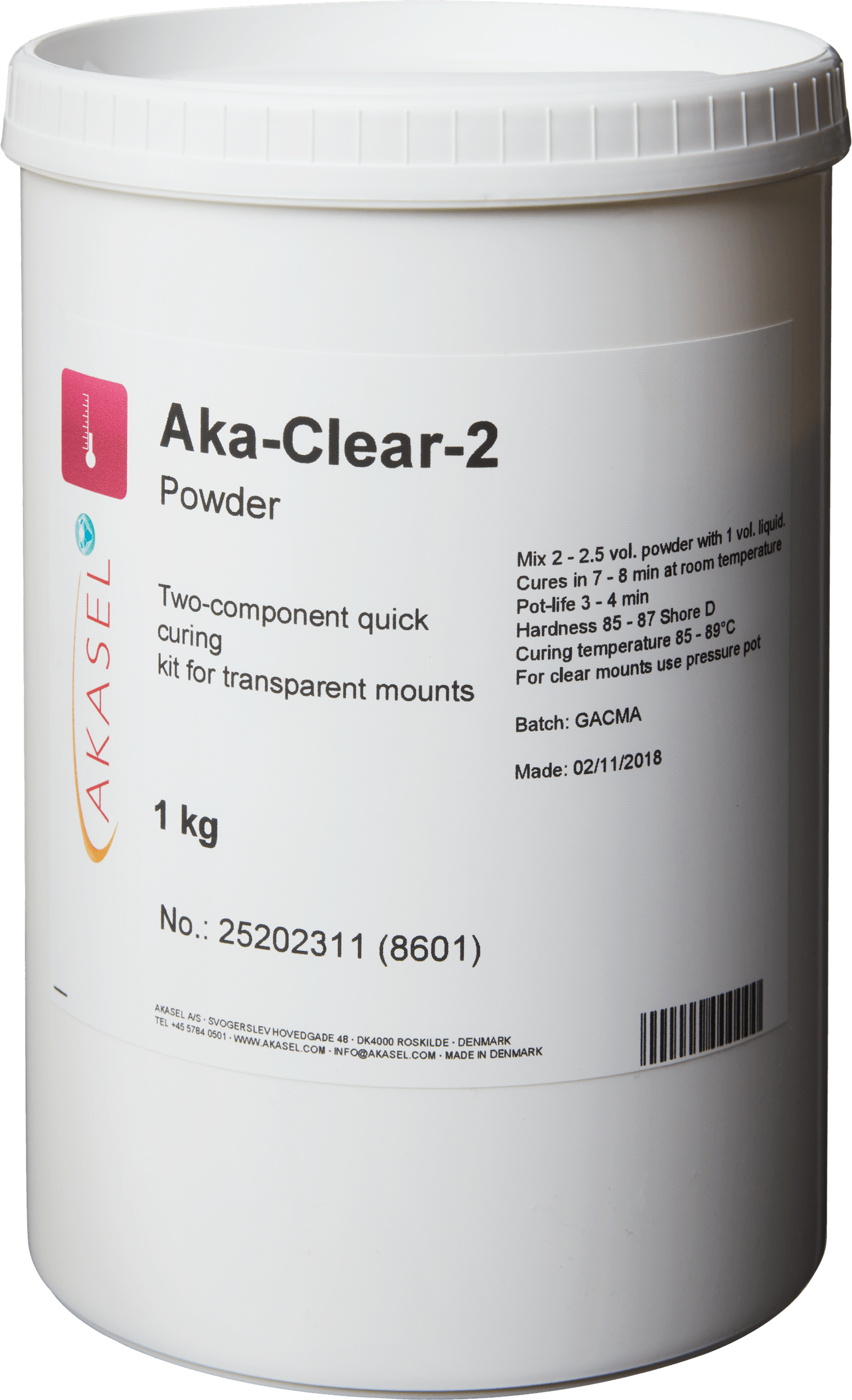 Poeder voor tweecomponenten snel uithardend acrylaatsysteem voor transparante preparaten. Ideaal voor storingsanalyse en bij het prepareren van elektronische componenten dankzij de volledige zichtbaarheid van het monster.