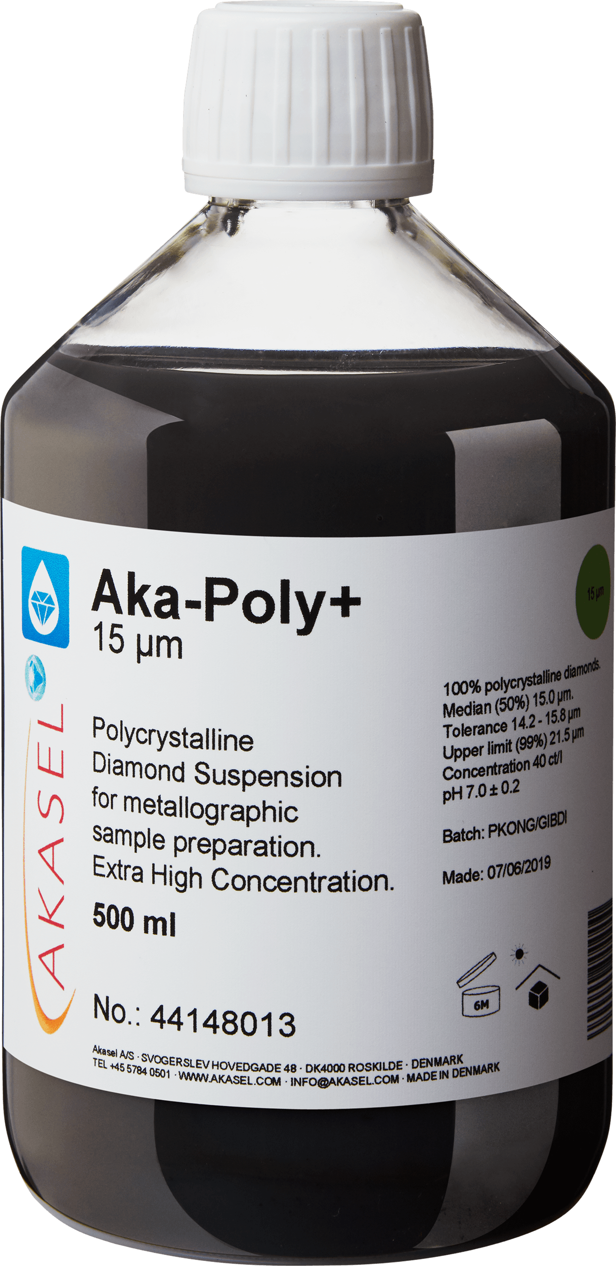 Aka-Poly+ zorgt voor het snelst mogelijke prepareren met uitstekende verwijderingssnelheden. Biedt de mogelijkheid om de verhouding diamantsuspensie/smeermiddel nauwkeurig aan te passen.