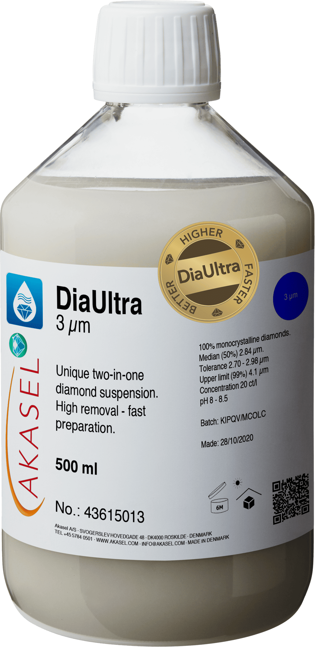 DiaUltra biedt de hoogste verwijdering, kortste monstervoorbereidingstijden en de beste oppervlakkwaliteit in combinatie met een eenvoudige dosering waarmee reproduceerbaarheid wordt gegarandeerd.